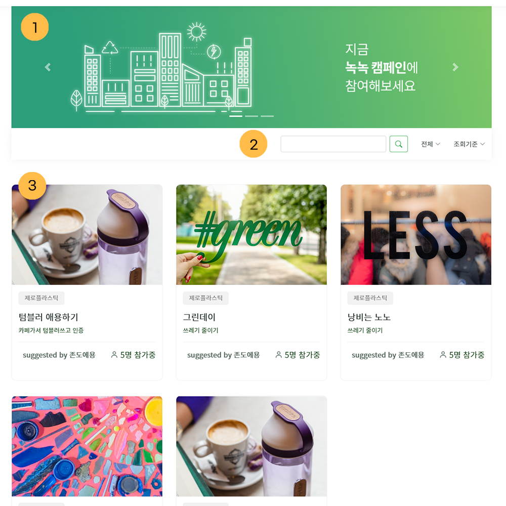 2. 진행중인 캠페인의 제목을 검색할 수 있으며 조회기준을 설정하여 사용자가 쉽게 접근할 수 있도록 하였습니다.