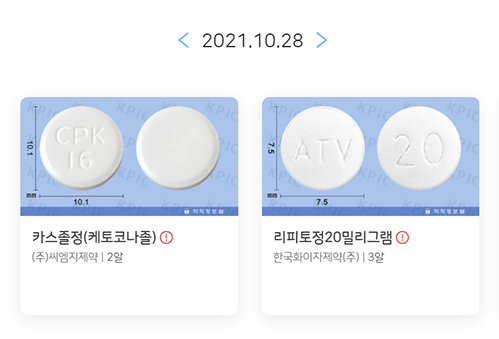 2. 그대로 등록할 시, 기존 약과 새로 등록한 약에 경고표시가 나타납니다.
