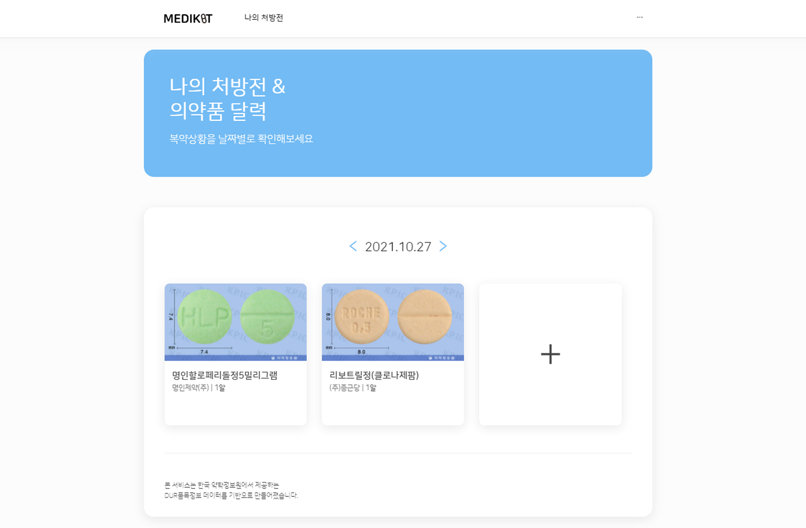 공공데이터를 활용한 의약품 관리 서비스를 기획, 개발하였습니다.