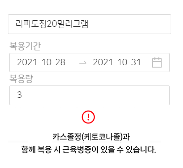 복용기간이 겹치는 경우 경고메세지를 출력합니다.